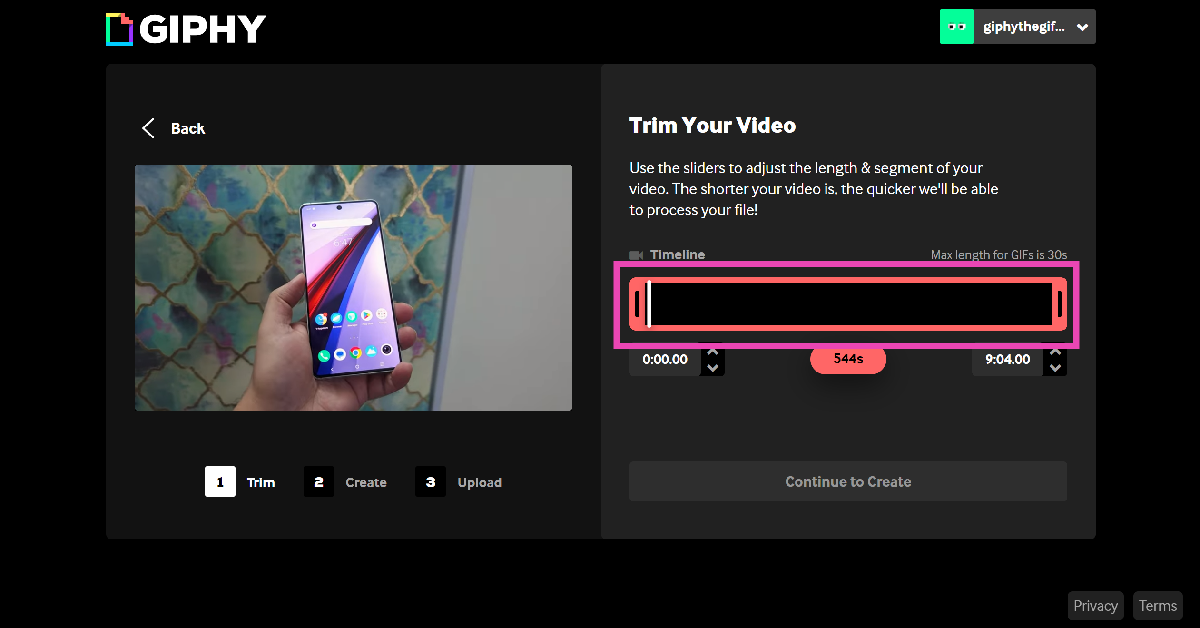Βήμα 4:Ρυθμίστε τομήκοςτου gif. Η μέγιστη επιτρεπόμενη διάρκεια για ένα GIF είναι30 δευτερόλεπτα. Χρησιμοποιήστε τοολισθητήςΓια να επιλέξετε ποιο μέρος του βίντεο θέλετε να μετατραπεί σε GIF.