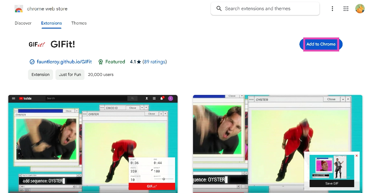 Βήμα 1:ΑναζήτησηGifit! Στο κατάστημα Web Chromeκαιπροσθέτωστο πρόγραμμα περιήγησής σας.