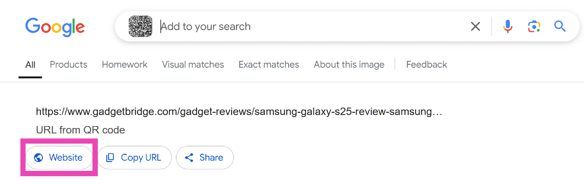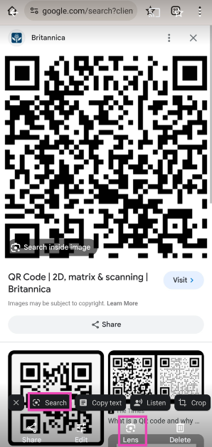 Βήμα 4:Ο φακός της Google θασάρωσηΟ κωδικός για εσάς. Κλικ στοΔικτυακός τόποςΓια να μεταβείτε στον σύνδεσμο που είναι ενσωματωμένος στον κώδικα QR.