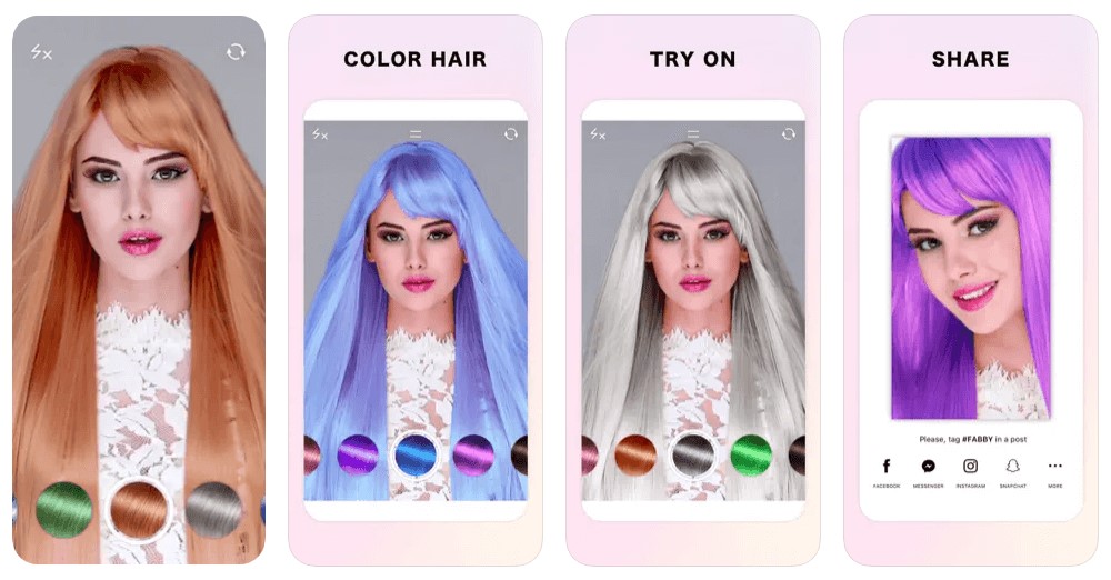 Το Fabby Look είναι μια εφαρμογή χρώματος μαλλιών που είναι ευχάριστη, φορτώνει γρήγορα και παρέχει μια ρεαλιστική εμπειρία, ακόμη και αν οι επιλογές χρωμάτων της επικεντρώνονται κυρίως στις μη ρεαλιστικές αποχρώσεις. Εάν θέλετε να πειραματιστείτε με χρώματα όπως μπλε, μοβ, ροζ, ματζέντα, πλατίνα και άλλες διασκέδαση και ζωντανές αποχρώσεις, αυτή η εφαρμογή είναι ιδανική για εσάς.