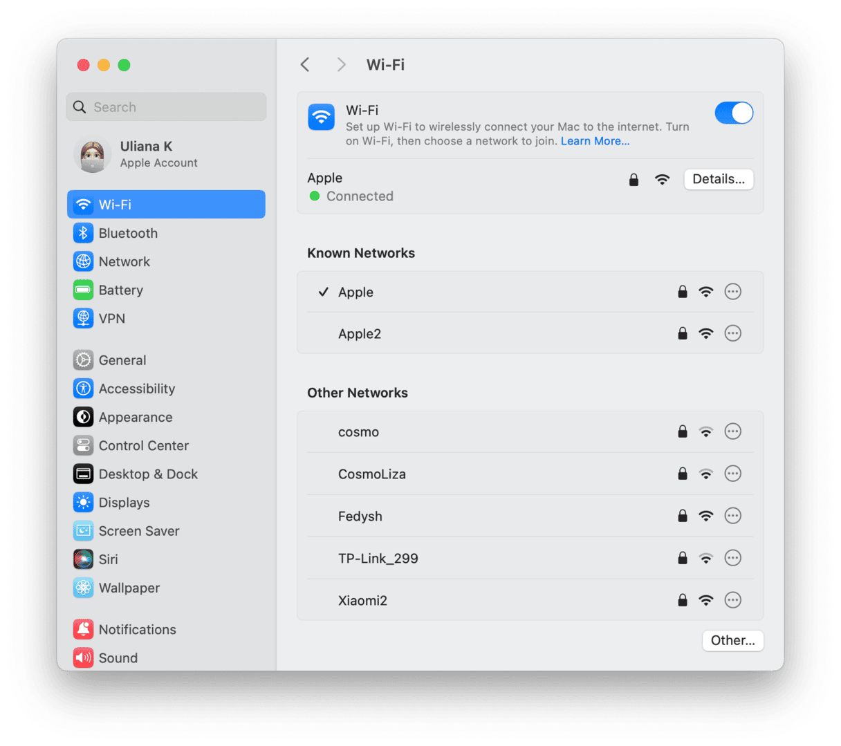 Επιλέξτε το κύριο μενού Apple> Ρυθμίσεις συστήματος> Δίκτυο> Wi-Fi.