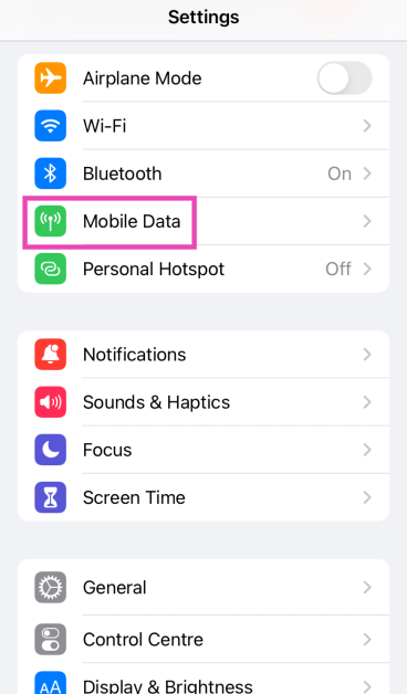 Βήμα 1:ΠηγαίνωΡυθμίσειςκαι επιλέξτεΚινητά δεδομένα.