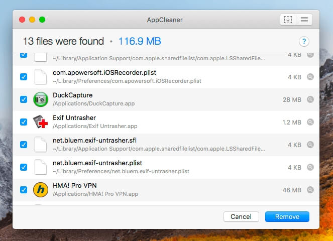 Appleanerαφαιρεί τις ανεπιθύμητες εφαρμογές και καθαρίζει τα συνδεδεμένα αρχεία τους.