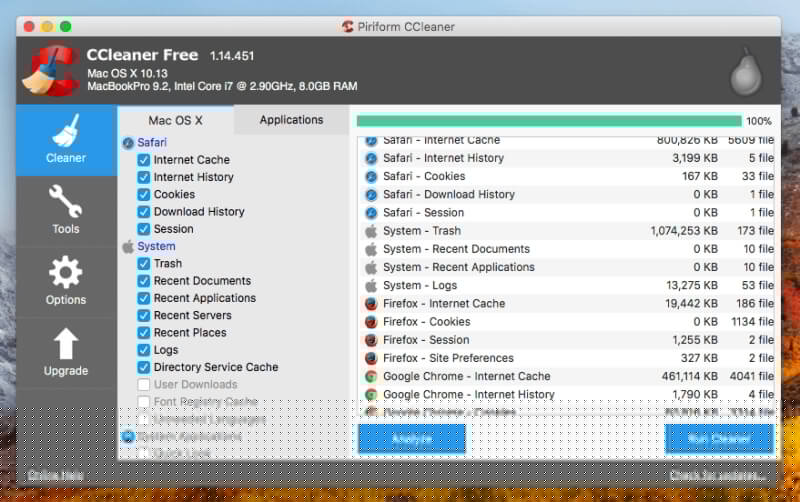 Ccleaner για Macείναι μια δημοφιλής εφαρμογή που θα καταργήσει τα προσωρινά αρχεία από το Mac σας και περιλαμβάνει ορισμένα εργαλεία που απεγκαταστήσουν τις εφαρμογές, αφαιρέστε τα στοιχεία εκκίνησης και διαγράψτε τις μονάδες δίσκου.