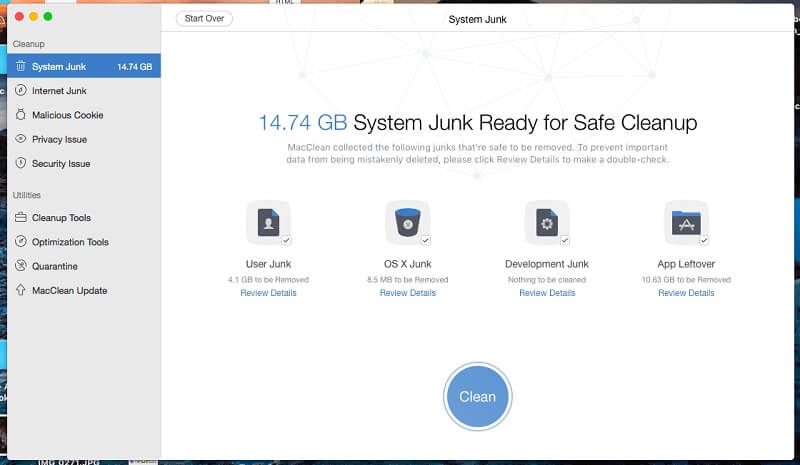 Το MacClean μπορεί να καθαρίσει το Mac σας με διάφορους τρόπους: