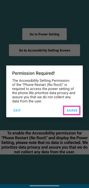 Βήμα 2:Ξεκινήστε την εφαρμογή και αφήστε τοπρόσβαση στη ρύθμιση ισχύοςτου τηλεφώνου σας.