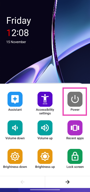 ΠηγαίνωΡυθμίσεις> Πρόσθετες ρυθμίσεις> Προσβασιμότητα> μενού προσβασιμότητας> συντόμευσηκαι ενεργοποιήστε το διακόπτη εναλλαγής. Πατήστε το εικονίδιο προσβασιμότητας στην οθόνη, πατήστε το κεραμίδι 'Power' και επιλέξτε 'Επανεκκίνηση'.