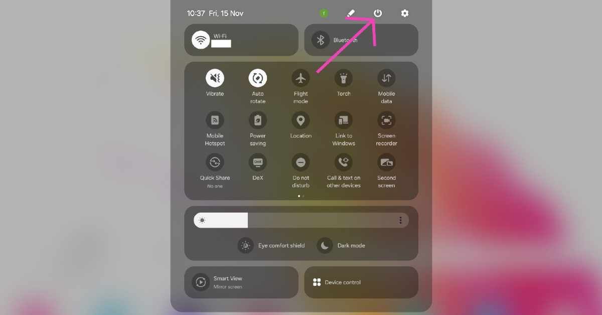 Βήμα 1: Κτύπημα κάτωαπό την αρχική οθόνη ή τη γραμμή κατάστασης για πρόσβαση στοΜενού γρήγορων ρυθμίσεων.