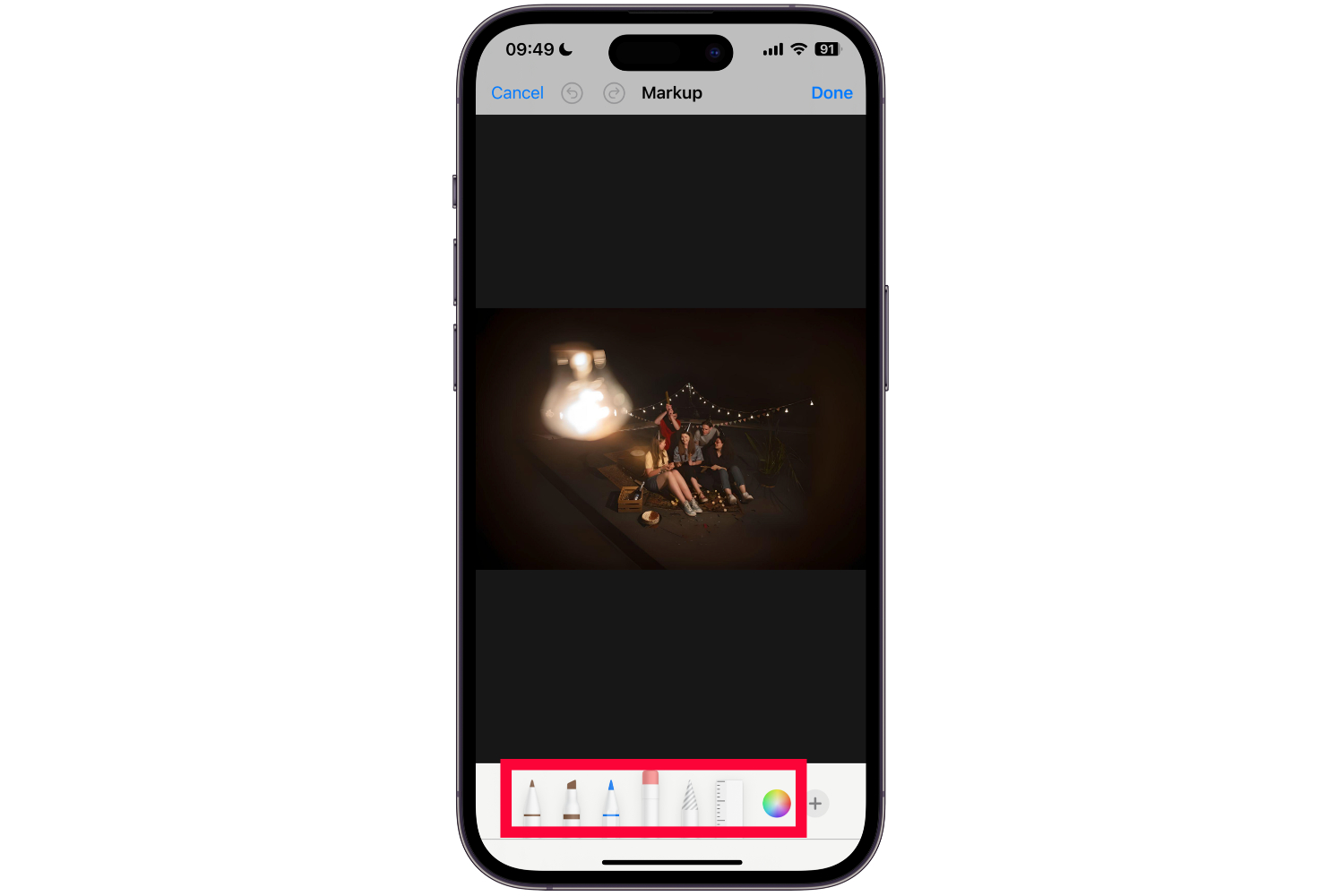 Ανοίξτε τις φωτογραφίες της Apple και επιλέξτε τις φωτογραφίες που θέλετε να σχεδιάσετε. Πατήστε "Επεξεργασία" και πατήστε το εικονίδιο βούρτσας. Στη συνέχεια, μπορείτε να χρησιμοποιήσετε διαφορετικές βούρτσες για να σχεδιάσετε εικόνες στο iPhone στη διεπαφή εργαλείου σήμανσης.