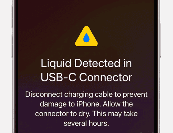 - Εάν ανιχνευθεί νερό, το iOS θα σας ειδοποιήσει όταν προσπαθείτε να χρεώσετε.