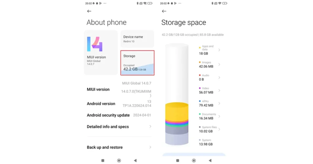 Οδηγίες:Αποκτήστε πρόσβαση στις ρυθμίσεις Android και στη συνέχεια ανοίξτε το "About Phone" από το μενού. Μετά από αυτό, αναζητήστε την επιλογή "αποθήκευσης" για να αποκαλύψετε αργότερα όλη την εσωτερική αποθήκευση που καταλαμβάνεται. Μετά από αυτό, θα μπορείτε να καθαρίσετε τυχόν περιττά στοιχεία στην εσωτερική αποθήκευση.