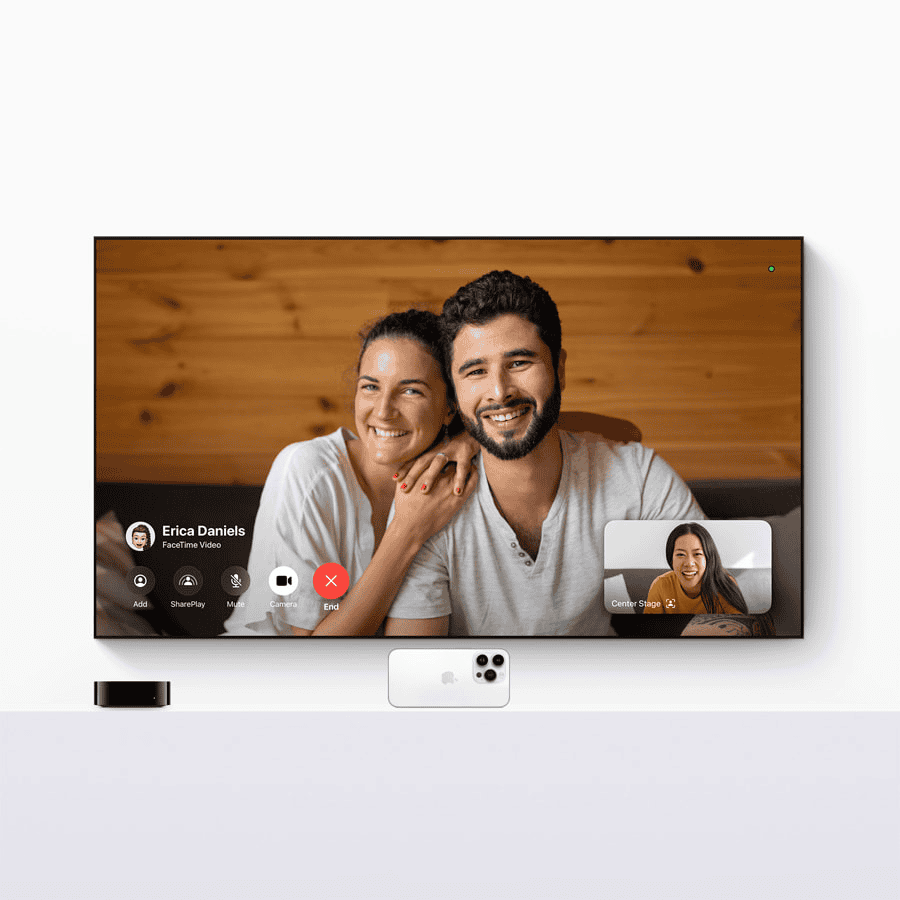 Η Apple TV φέρνει τη χρήση της κάμερας στη μεγάλη οθόνη στο σαλόνι. Υποστηρίζει βίντεο κλήσεις, εμφανίζει τροφοδοσίες κάμερας homeKit και αξιοποιεί άλλα έξυπνα χαρακτηριστικά.