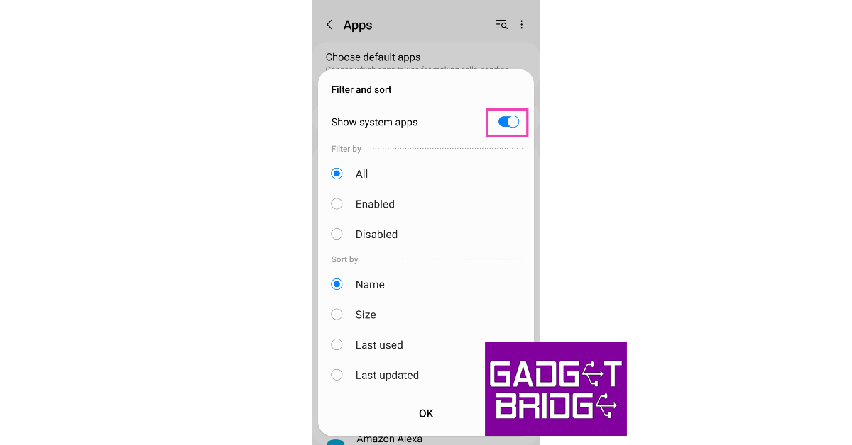 Βήμα 2:Πατήστε στο εικονίδιο φίλτρου και επιλέξτεΕμφάνιση εφαρμογών συστήματος.