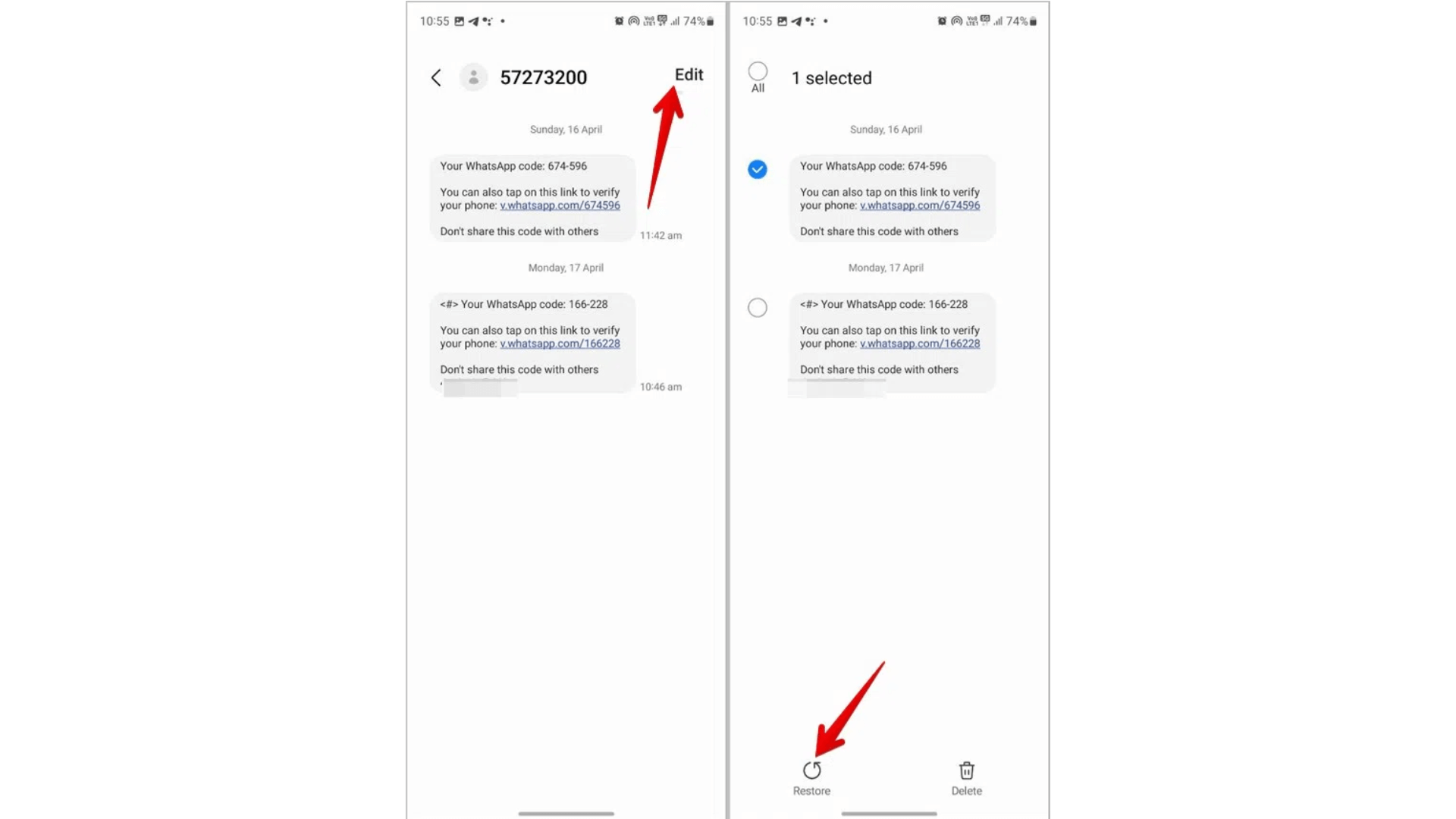 Ορισμένες εφαρμογές ανταλλαγής μηνυμάτων, όπως τα μηνύματα της Samsung και τα μηνύματα Google, προσφέρουν ένα ενσωματωμένο χαρακτηριστικό ανακύκλωσης. Αυτό το εικονικό δίχτυ ασφαλείας μπορεί να αποθηκεύσει τα διαγραμμένα μηνύματά σας για μια περίοδο, συνήθως 30 ημέρες, προτού τα αφαιρέσετε μόνιμα από τη συσκευή σας. Αξίζει λοιπόν να προσπαθήσετε να ανακτήσετε χαμένες συνομιλίες από τον κάδο ανακύκλωσης.