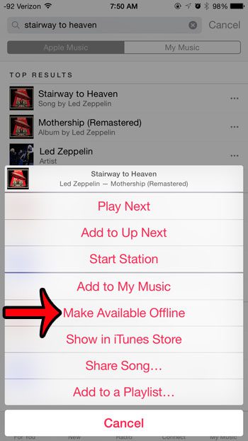 Ο οδηγός μας συνεχίζεται παρακάτω με πρόσθετες πληροφορίες σχετικά με τη λήψη τραγουδιών για χρήση εκτός σύνδεσης στην Apple Music και μια απάντηση στο ερώτημα του μπορείτε να ακούσετε την Apple Music εκτός σύνδεσης, συμπεριλαμβανομένων των εικόνων αυτών των βημάτων.