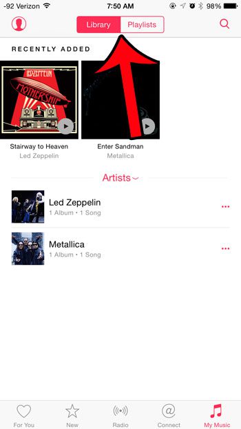 Υπάρχει επίσης μια επιλογή εναλλαγής μεταξύ σαςΒιβλιοθήκηκαιΛίστες αναπαραγωγήςστην κορυφή τουΗ μουσική μουμενού.