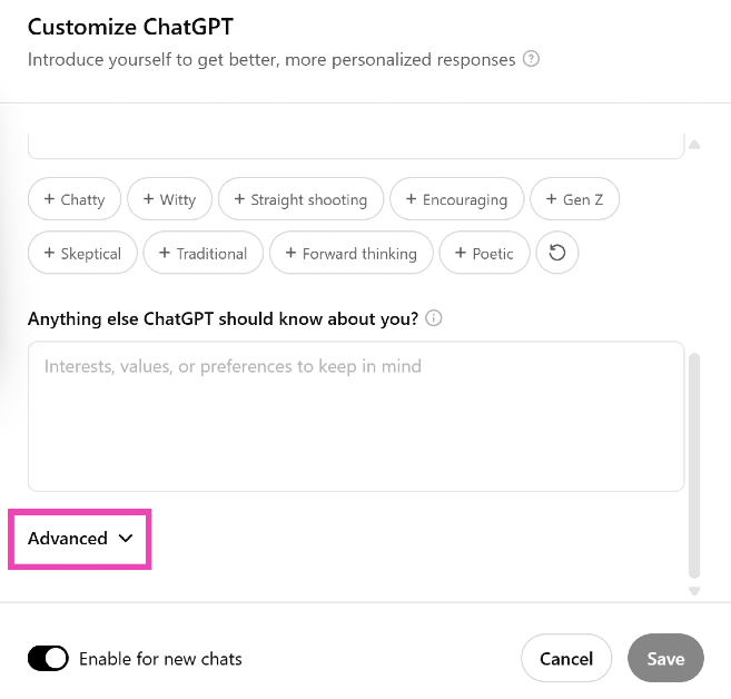 Απενεργοποιήστε το Dall-E από προηγμένες ρυθμίσεις
