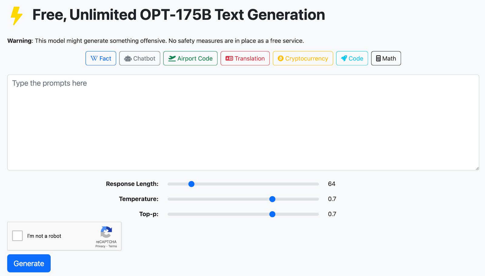 Η ALPA αναπτύσσεται από το UC Berkeley's Sky Lab για να απλοποιήσει την εκπαίδευση και την ανάπτυξη μεγάλων μοντέλων μηχανικής μάθησης όπως το GPT-3. Παρέχει ένα προσβάσιμο περιβάλλον με εργαλεία για την κατάρτιση μοντέλων, την τελειοποίηση και την ανάπτυξη. Η ALPA φιλοξενεί επίσης μια παιδική χαρά AI με το OPT-175B, ένα μοντέλο ισοδύναμου GPT-3, για δωρεάν παραγωγή κειμένου. Οι χρήστες μπορούν να διερευνήσουν διάφορες εφαρμογές, να ρυθμίσουν τις ρυθμίσεις ή να εισάγουν προσαρμοσμένες υποδείξεις για μια εξατομικευμένη εμπειρία.