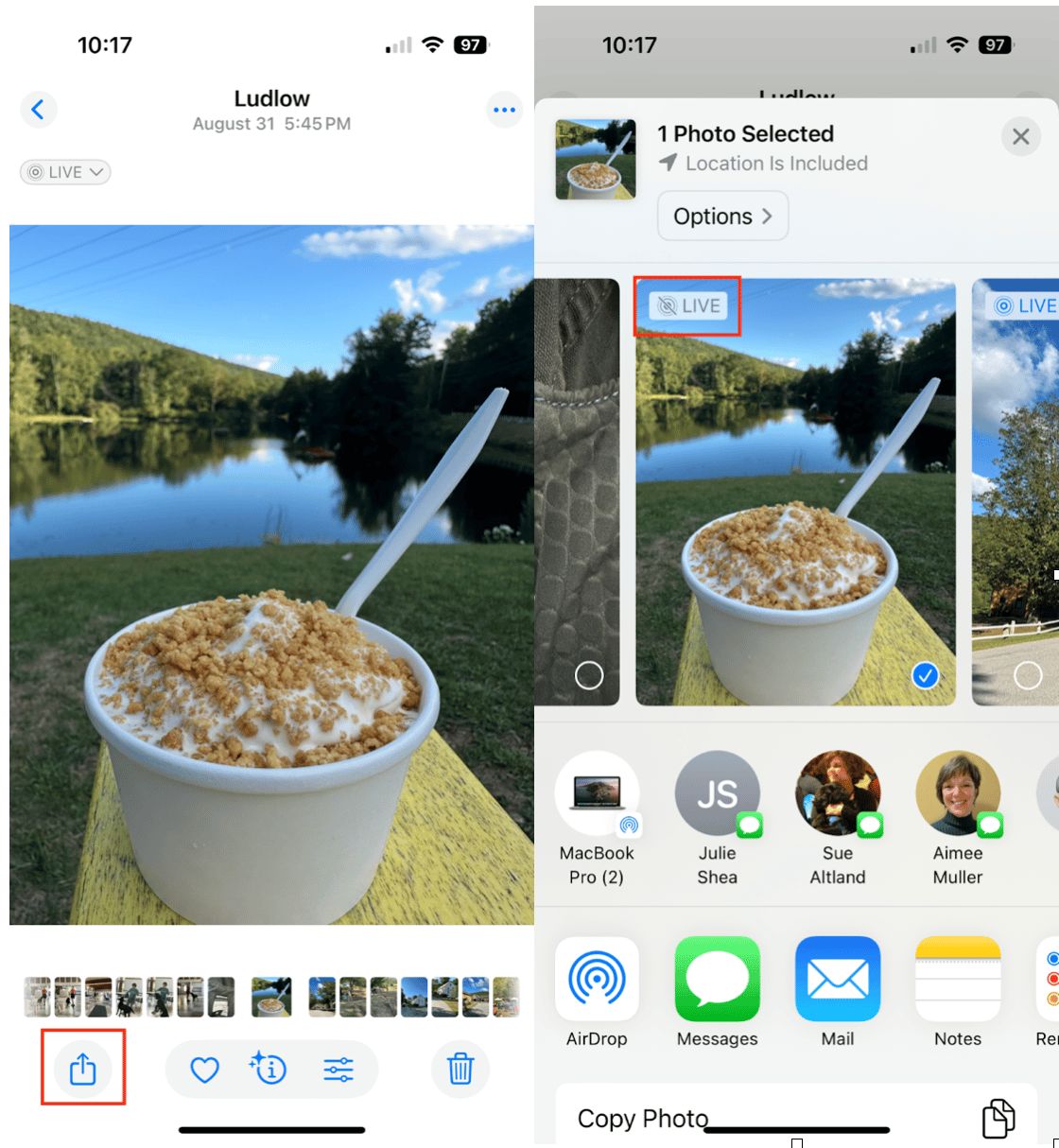 - Στην εφαρμογή φωτογραφιών, επιλέξτε τη ζωντανή φωτογραφία που θέλετε να μοιραστείτε.