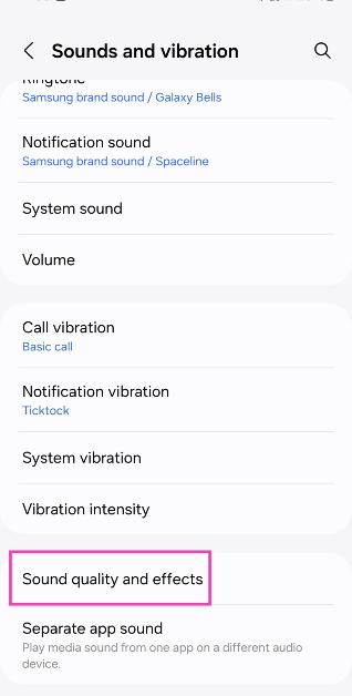 Βήμα 2:Μετακινηθείτε προς τα κάτω και επιλέξτεΠοιότητα ήχου και εφέ.