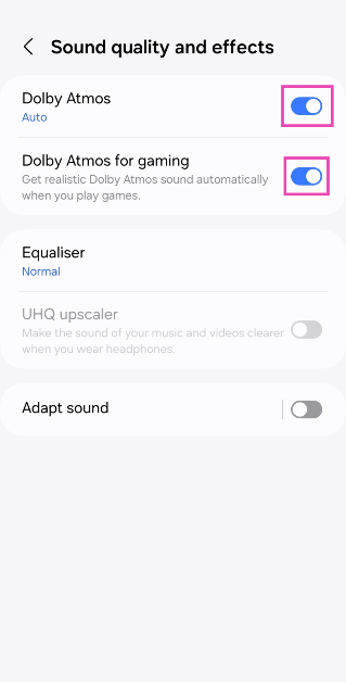 - ΠηγαίνωΡυθμίσεις> Ήχος & δόνηση> Ηχητικά εφέΚαι ελέγξτε αν υπάρχει μια επιλογή για να ενεργοποιήσετε το Dolby Atmos