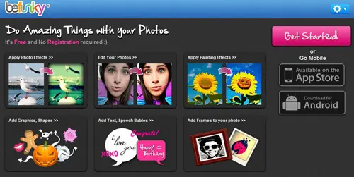 Μόλις χρησιμοποιήσετε το befunky για να επεξεργαστείτε τις εικόνες online δωρεάν, θα διαπιστώσετε ότι δεν υπάρχουν πολλές καταστάσεις όπου δεν μπορείτε να επιτύχετε τα επιθυμητά εφέ εικόνας με τον online επεξεργαστή εικόνων.