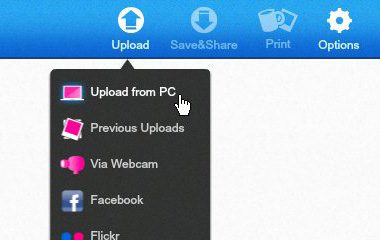 Βήμα 3: Κάντε κλικ στοΜεταφόρτωση από υπολογιστήκουμπί στην επάνω δεξιά γωνία του παραθύρου, στη συνέχεια περιηγηθείτε στην εικόνα στον υπολογιστή σας που θέλετε να επεξεργαστείτε. Εάν η εικόνα που θέλετε να επεξεργαστείτε δεν αποθηκεύεται τοπικά στον υπολογιστή σας, μπορείτε επίσης να εισαγάγετε μια εικόνα από την κάμερα ή από μια εικόνα που έχετε αποθηκεύσει στο Facebook.