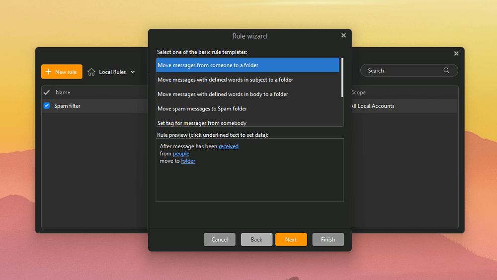 Τόσο ο πελάτης EM όσο και το Mailbird μπορούν να ενσωματώσουν οποιαδήποτε υπάρχουσα δομή φακέλου και φίλτρα μηνυμάτων που έχουν ήδη δημιουργηθεί με τον λογαριασμό σας και τώρα σας επιτρέπουν επίσης να ρυθμίσετε προσαρμόσιμα φίλτρα μηνυμάτων και φακέλους εντός της ίδιας της εφαρμογής. Ο πελάτης EM χρησιμοποιείται για να έχει πολύ καλύτερες ικανότητες φιλτραρίσματος, αλλά το Mailbird έκλεισε το κενό και είναι και οι δύο αρκετά ικανοί.