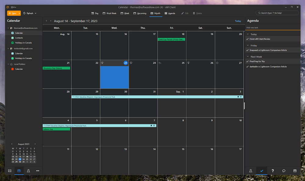 Νικητής:Γραβάτα. Το EM Client προσφέρει καλή ενσωμάτωση με τα ημερολόγια Google, iCloud και Generic Caldav, αλλά περιορίζεται στα μέτωπα των καθηκόντων. Το Mailbird δεν υποστηρίζει το CalDAV ή το iCloud, αλλά προσφέρει ένα ευρύ φάσμα επιλογών διαχείρισης εργασιών μέσω των ενοποιήσεων εφαρμογών.