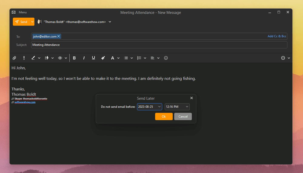Ο πελάτης EM έχει μερικές εξαιρετικές επιπλέον επιλογές όταν πρόκειται για την αποστολή μηνυμάτων ηλεκτρονικού ταχυδρομείου, όπως οι καθυστερημένες/προγραμματισμένες ομάδες αποστολής και μηνυμάτων, οι οποίες λειτουργούν αρκετά καλά με τον προγραμματισμό για την πραγματοποίηση ανακοινώσεων σε φίλους/οικογενειακούς/συναδέλφους. Εάν εργάζεστε σε μια ευαίσθητη βιομηχανία όπως η χρηματοδότηση, η ασφάλεια ή η δημοσιογραφία, θα εκτιμήσετε επίσης την ικανότητα να κρυπτογραφείτε όλα τα μηνύματά σας με το PGP.