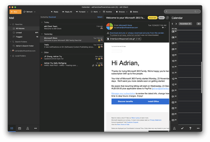 EM πελάτηςείναι ένα σύγχρονο, ελκυστικό πρόγραμμα για Mac και Windows με ένα μη εντυπωσιακό όνομα. Προσφέρει τόνους χαρακτηριστικών που θα επιταχύνουν τη ροή εργασίας σας και θα σας βοηθήσουν να οργανώσετε το email σας. Η εφαρμογή περιλαμβάνει εργαλεία παραγωγικότητας όπως ημερολόγιο, διαχειριστής εργασιών και πολλά άλλα.
