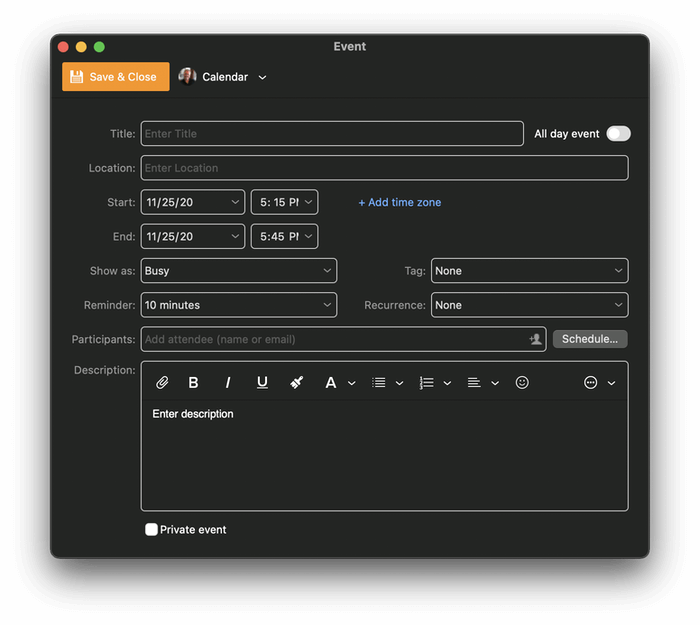 Λειτουργούν καλά, αλλά δεν θα ανταγωνιστούν με το κορυφαίο λογισμικό παραγωγικότητας. Για παράδειγμα, μπορείτε να δημιουργήσετε επαναλαμβανόμενα ραντεβού, να δείτε όλα τα μηνύματα ηλεκτρονικού ταχυδρομείου που ανήκουν σε μια επαφή και να ορίσετε υπενθυμίσεις. Συνδέονται με μια σειρά εξωτερικών υπηρεσιών, όπως το iCloud, το ημερολόγιο Google και άλλα ημερολόγια του Διαδικτύου που υποστηρίζουν το CalDAV. Οι συναντήσεις και οι εργασίες μπορούν να δημιουργηθούν γρήγορα κάνοντας δεξί κλικ σε ένα μήνυμα.