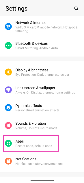 Βήμα 1:ΠηγαίνωΡυθμίσειςκαι επιλέξτεΕφαρμογές.
