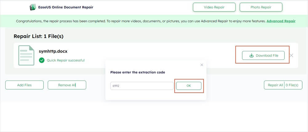 - Μεταφορτώστε και επισκευάστε αρχεία:Μεταφορτώστε το κατεστραμμένο αρχείο και κάντε κλικ στην επιλογή "Έναρξη" για να ξεκινήσετε τη διαδικασία επισκευής.
