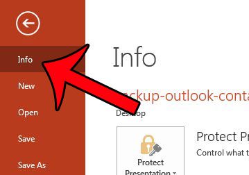 Βήμα 3: Κάντε κλικΠληροφορίεςΣτη στήλη στην αριστερή πλευρά του παραθύρου.