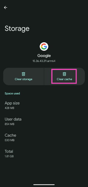 Καθαρίστε την προσωρινή μνήμη της εφαρμογής της Google