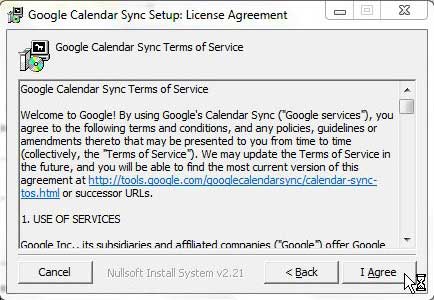 Βήμα 3: Κάντε διπλό κλικ στο αρχείο λήψης, κάντε κλικ στο κουμπίΤρέξιμο, στη συνέχεια κάντε κλικ στοΣυμφωνώΚουμπί στο παράθυρο της Σύμβασης Σύνδεσης του Ημερολογίου Google.