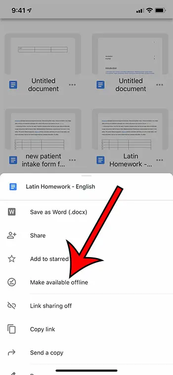 Ευτυχώς μπορείτε να κάνετε ένα αρχείο διαθέσιμο εκτός σύνδεσης στην εφαρμογή iPhone Google Docs, ώστε να μπορείτε να το επεξεργαστείτε ακόμη και όταν δεν έχετε σύνδεση στο Διαδίκτυο.