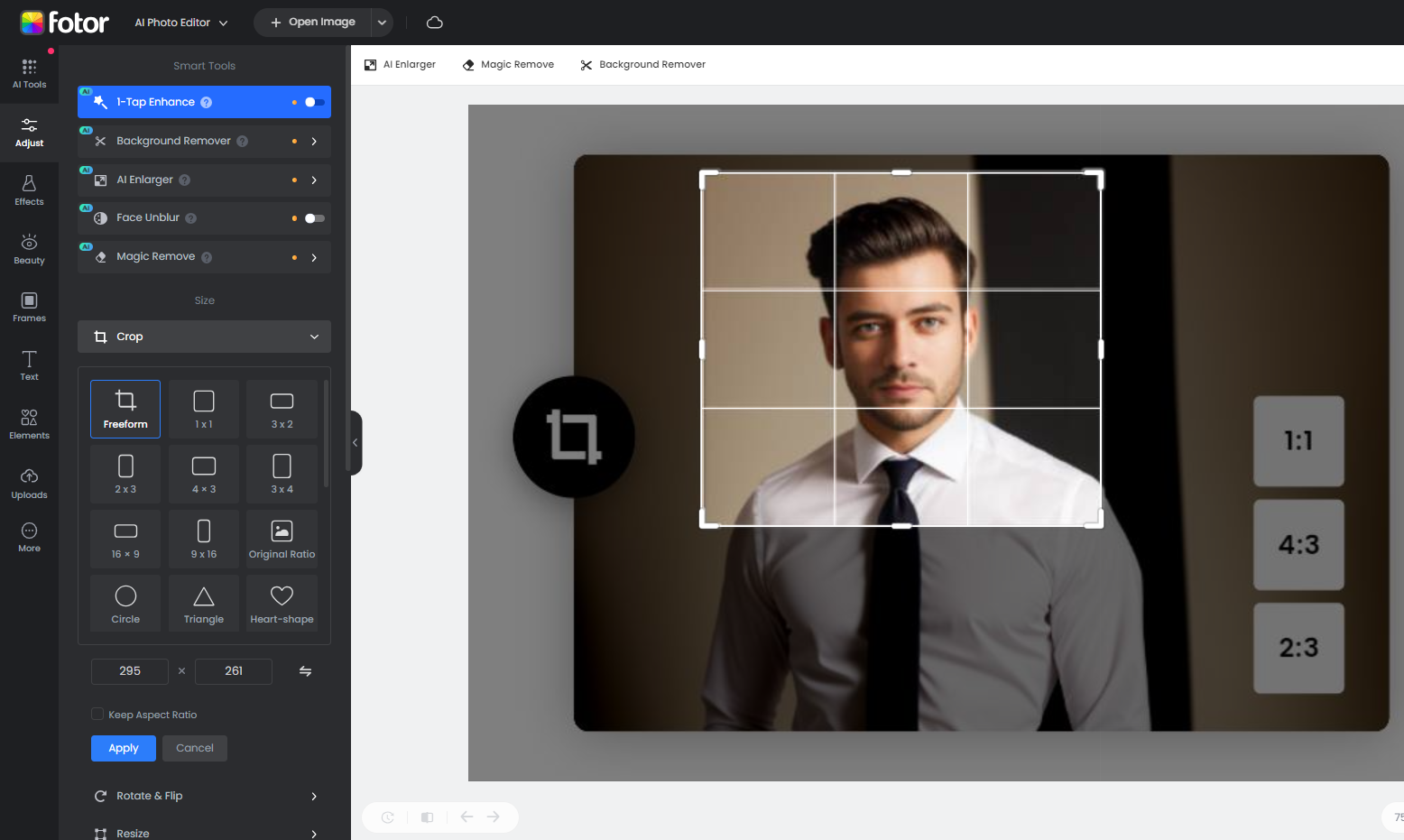 Χρησιμοποιώντας το εργαλείο καλλιέργειας Headshot - Fotor Image Cropper, θα γνωρίζετε εύκολα πώς να δημιουργήσετε ή να καλλιεργήσετε την τυπική διάσταση φωτογραφίας Headshot. Το Fotor Photo Editor είναι διαθέσιμος για εσάς για να κάνετε ένα κλικ στις διαστάσεις Headshot Crop. Με τα προκαθορισμένα πρότυπα διαστάσεων εικόνας Headshot, μπορείτε να καλλιεργήσετε headshots σε οποιοδήποτε μέγεθος και σχήμα σε δευτερόλεπτα.