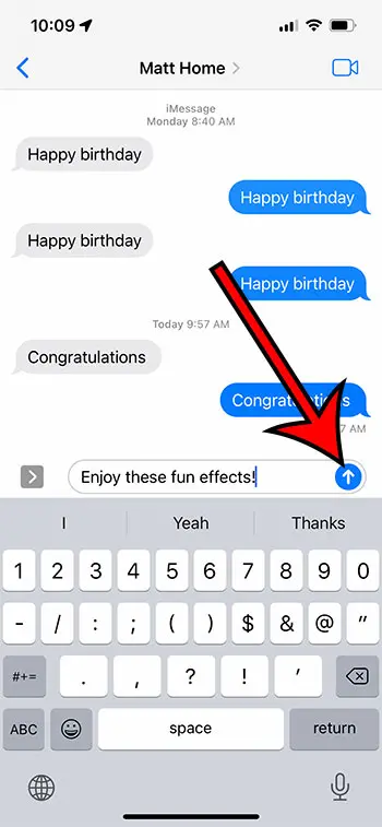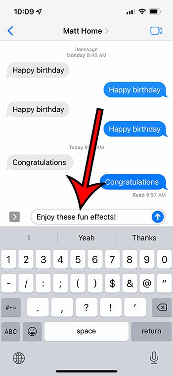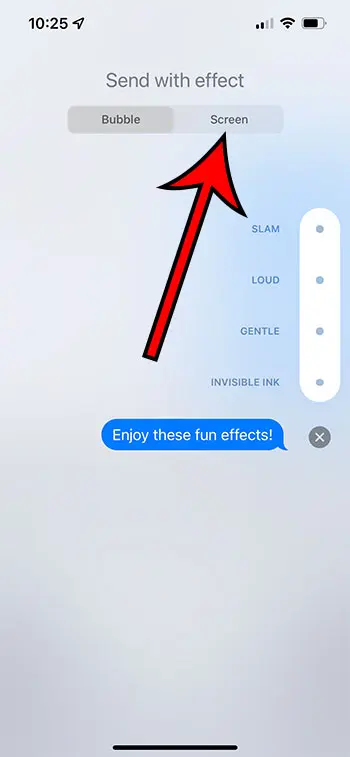 Ο οδηγός μας συνεχίζεται παρακάτω με περισσότερες πληροφορίες σχετικά με τη συμπερίληψη εφέ σε μηνύματα που στέλνετε από το iPhone σας, συμπεριλαμβανομένων των εικόνων αυτών των βημάτων.