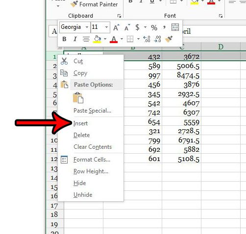 - Κάντε δεξί κλικ στην επιλεγμένη σειρά και επιλέξτεΕισάγω.