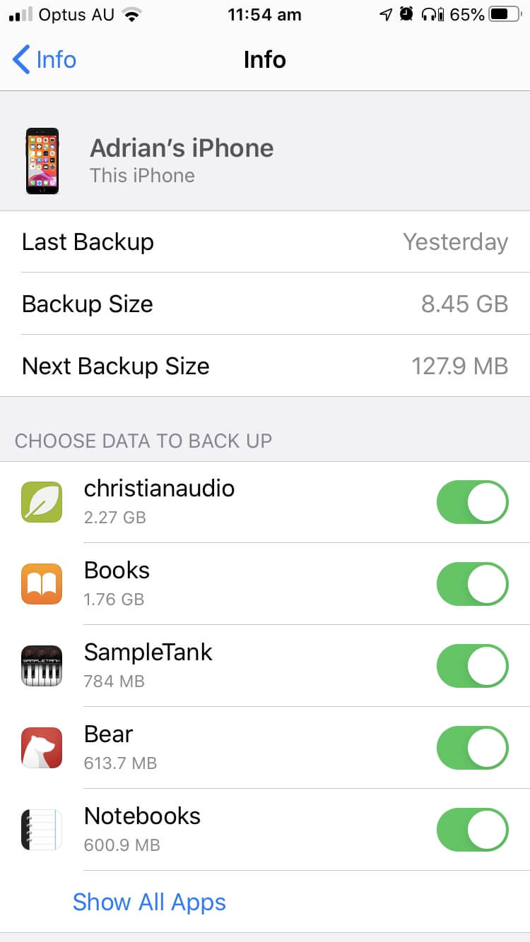 Αλλά όπως ανέφερα προηγουμένως, δεν πρέπει να υποστηριχθούν όλα αυτά τα δεδομένα. Καμία από τις εφαρμογές μου δεν θα δημιουργηθεί αντίγραφα ασφαλείας και επειδή χρησιμοποιώ φωτογραφίες iCloud, οι φωτογραφίες και τα βίντεό μου δεν θα είναι ούτε. Οποιαδήποτε δεδομένα εφαρμογών που είναι αποθηκευμένα στο iCloud Drive δεν θα υποστηριχθούν επίσης.