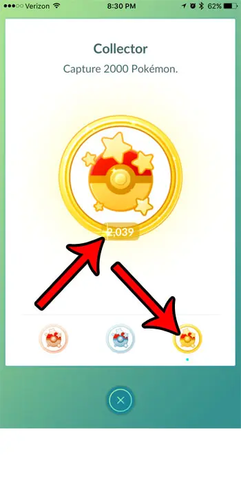 Βήμα 4: Πατήστε το σωστό κύκλο στο κάτω μέρος της κάρτας μετάλλων. Ο συνολικός αριθμός των συλληφθέντων Pokemon εμφανίζεται στο κάτω μέρος του κύκλου του μετάλλου στο κέντρο της οθόνης.