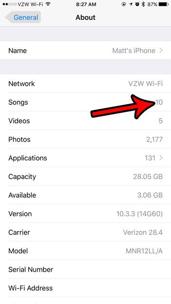 Τώρα που ξέρετε πώς να ελέγξετε πόσα τραγούδια έχετε στην εφαρμογή μουσικής στο iPhone σας, μπορείτε να χρησιμοποιήσετε αυτήν την οθόνη για να εντοπίσετε αυτό και άλλες παρόμοιες πληροφορίες όποτε το χρειάζεστε.
