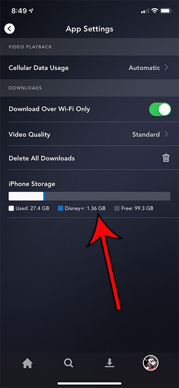 Αλλά τα iPhones έχουν περιορισμένο ποσό αποθηκευτικού χώρου και μπορεί να ανησυχείτε ότι οι λήψεις Disney + χρησιμοποιούν πάρα πολύ από αυτό το χώρο. Ο παρακάτω οδηγός θα σας δείξει πού να δείτε το συνολικό ποσό του αποθηκευτικού χώρου που χρησιμοποιείται από όλα τα βίντεο Disney Plus που έχετε κατεβάσει στο iPhone σας.