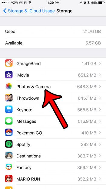 Βήμα 6: Δείτε τη χρήση αποθήκευσης για τους διάφορους τύπους εικόνων στο iPhone σας.