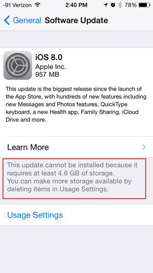 Το τυπικό ποσό του απαραίτητου χώρου για χρήστες iPhone 5 που θέλουν να ενημερώσουν στο iOS 8 φαίνεται να πέφτουν μεταξύ 3 και 5 GB, κατά μέσο όρο. Μπορείτε επίσης να επιλέξετε να ενημερώσετε μέσω του iTunes, αν προτιμάτε να μην το κάνετε ασύρματα. Μπορούν να βρεθούν οδηγίες για την εγκατάσταση iOS 8 μέσω του iTunesεδώ.