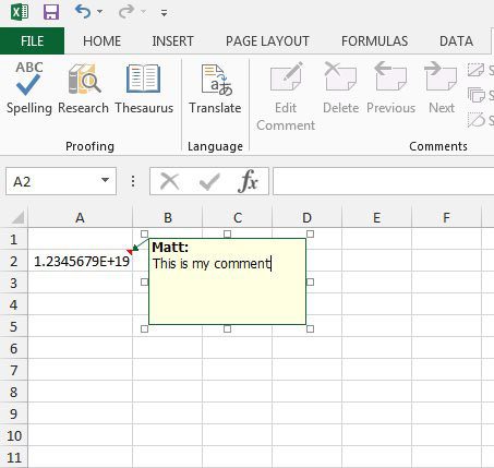 Βήμα 4: Πληκτρολογήστε το σχόλιό σας και, στη συνέχεια, κάντε κλικ σε ένα άλλο κελί όταν τελειώσετε για να κλείσετε το παράθυρο σχολίων.