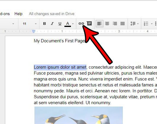 Βήμα 3: Κάντε κλικ στο κουμπί σύνδεσης στη γραμμή εργαλείων πάνω από το έγγραφο.
