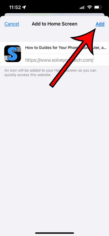 Ο οδηγός μας συνεχίζεται παρακάτω με πρόσθετες πληροφορίες σχετικά με τον τρόπο προσθήκης ενός συνδέσμου σαφάρι στην αρχική οθόνη σας σε ένα iPhone 13, συμπεριλαμβανομένων των εικόνων αυτών των βημάτων.